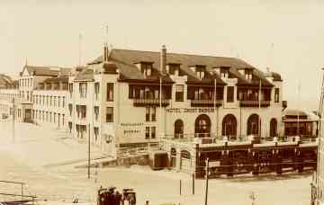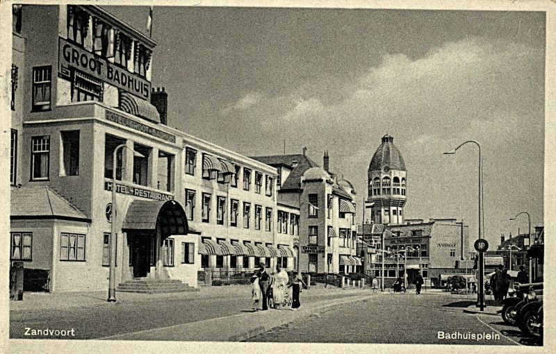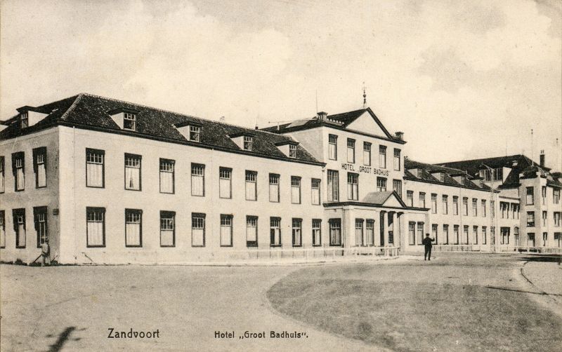 Het hotel werd gesticht in 1828 en had in die tijd een interne badinrichting, waar men wisselbaden met koud en verwarmd zeewater kon nemen.Volgens toenmalige artsen verkreeg men door deze jodiumhoudende geneeskrachtige baden een goede gezondheid. Het bezoekersaantal werd steeds groter waardoor de hotelaccommodatie regelmatig moest worden uitgebreid. Toen het hotel in 1943 op last van de Duitse bezetter werd afgebroken, omvatte het ruim 100 kamers, een groot restaurant en een schouwburgzaal plus de benodigde dienstruimten. Als herinnering aan dit Badhuis werd in 1966 besloten het plein zijn naam te laten behouden.