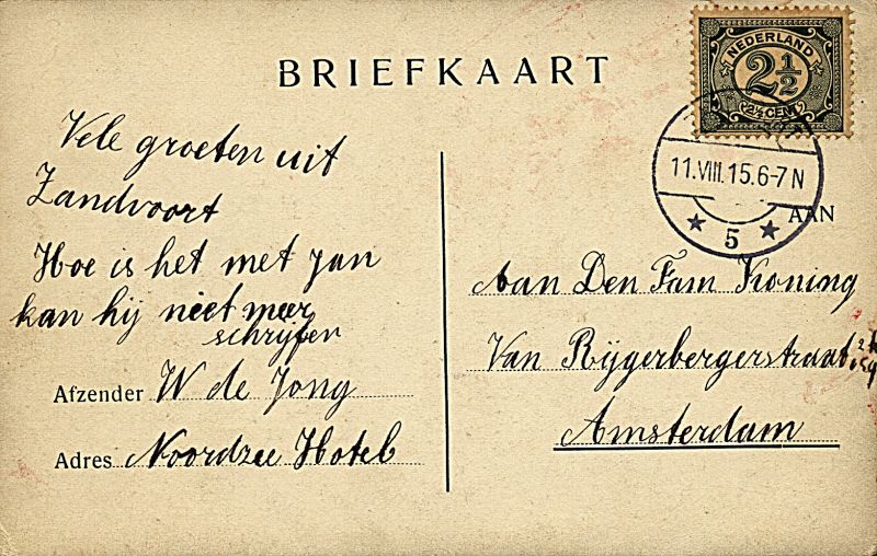 De collectie van mevrouw C.E. Kraan-Meeth bestaat uit oude Zandvoortse ansichtkaarten. Soms zijn ook de beschreven achterkanten van de kaarten getoond.
