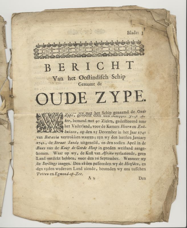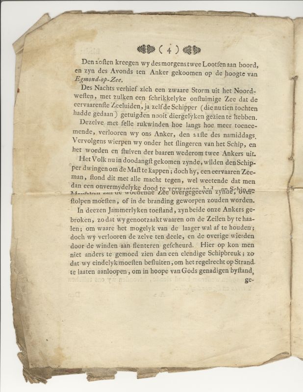 Beschrijving van de stranding uitgegeven door Izaäk van der Vinne, boekverkoper in de Warmoesstraat te Haarlem.