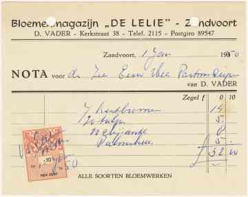 Bloemenmagazijn -De Lelie-, D. Vader, Kerkstraat 38, 1950