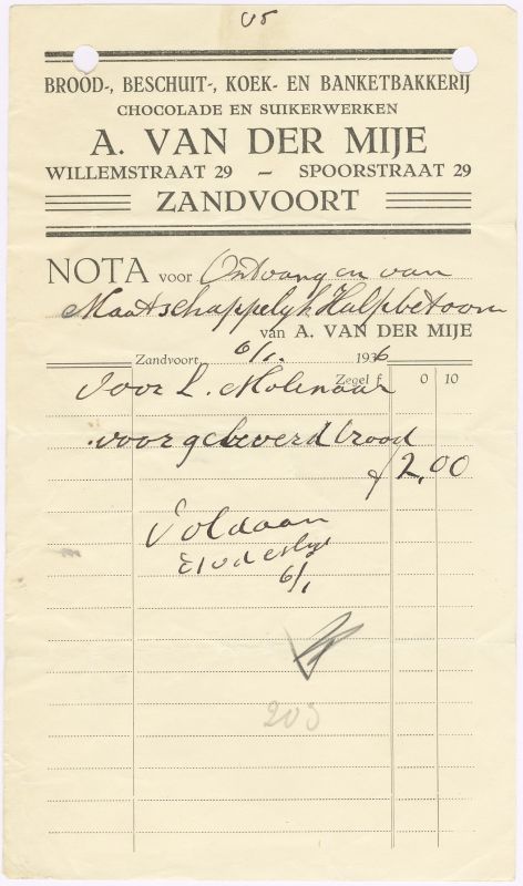 Brood-, Beschuit-, Koek- En Banketbakkerij, A. Van Der Mije, Willemstraat 29 - Spoorstraat 29, 1936