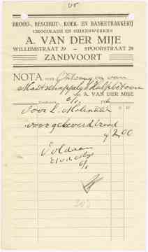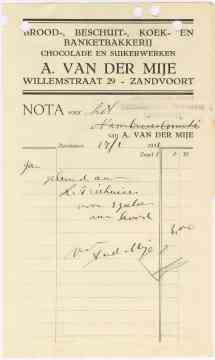 Brood-, Beschuit-, Koek- En Banketbakkerij, A. Van Der Mije, Willemstraat 29, 1933