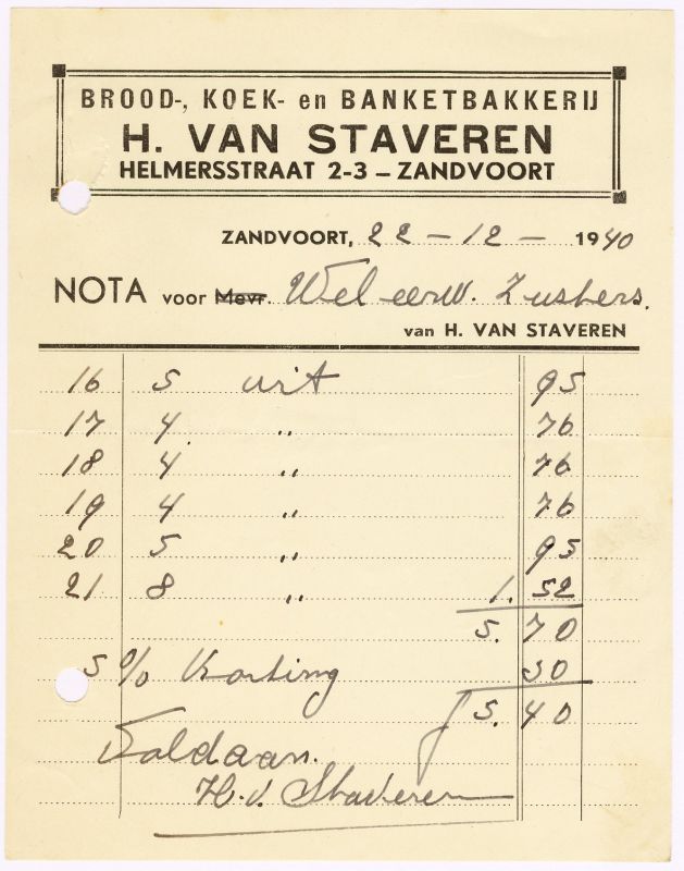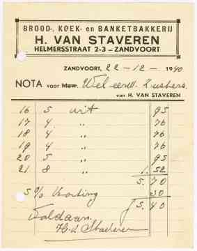 Brood-, Koek- En Banketbakkeerij H. Van Staveren, Helmerstraat 2-3, 1940