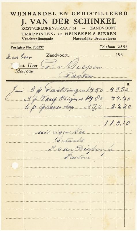J. Van Der Schinkel, Wijnhandel En Gedistilleerd, Spoorstraat 15-17, 195?
