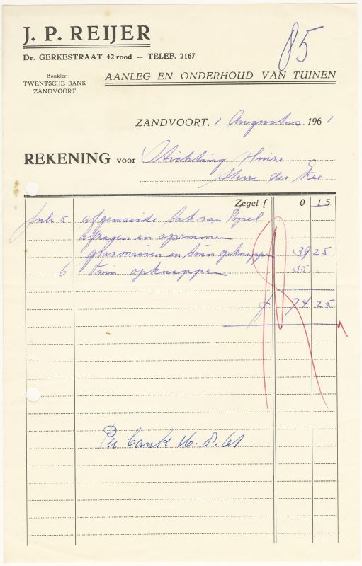 J.P. Reijer, Aanleg En Onderhoud Van Tuinen, Dr. Gerkestraat 42 Rd, 1961
