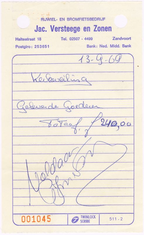 Jac. Versteege En Zonen, Rijwiel - En Bromfietsbedrijf, Haltestraat 18, 1969