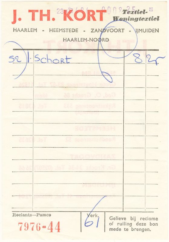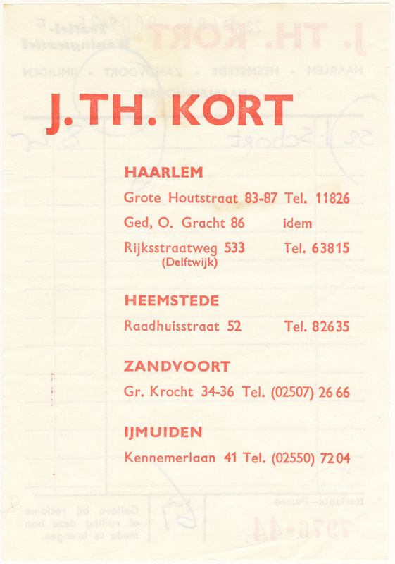 J.Th. Kort, Textiel-Woningtextiel, Grote Krocht 34-36, 1961