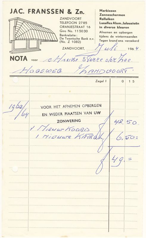 Jac. Franssen En Zn., Markiezen En Zonneschermen, Oranjestraat 16, 1964