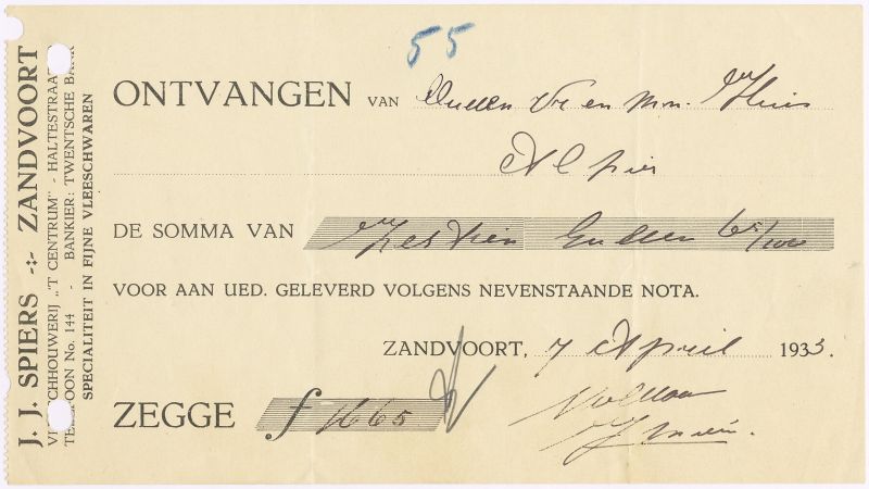 J.J. Spiers, Vleeschouwerij - T Centrum-, Haltestraat ?, 1933