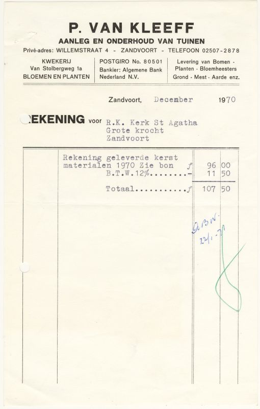 P. Van Kleeff, Aanleg En Onderhoud Van Tuinen, Willemstraat 4, Van Stolbergweg 1A, 1970