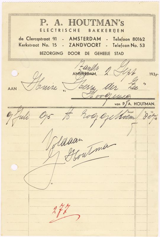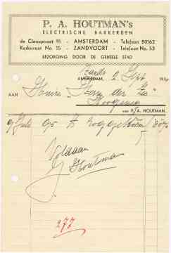 P.A. HoutmanS Electrische Bakkerijen, Kerkstraat 15, 1935