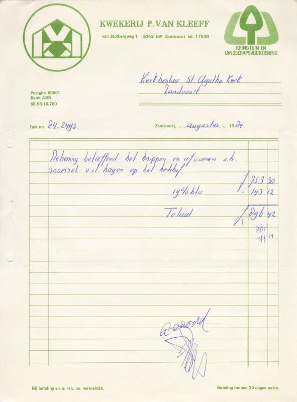 P. Van Kleeff, Aanleg En Onderhoud Van Tuinen, Van Stolbergweg 1A, 1984
