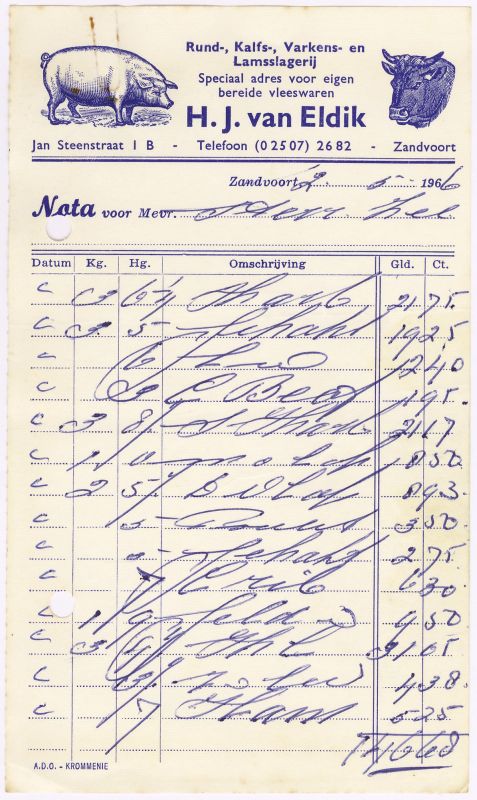 Rund-, Kalfs-, Varkens- En Lamsslagerij H.J. Van Eldik, Jan Steenstraat 1B, 1966