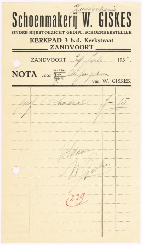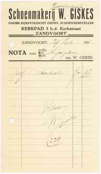 Schoenmakerij W. Giskes, Kerkpad 3, 1935