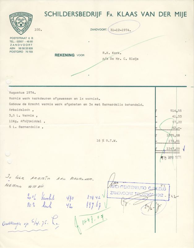 Schildersbedrijf Fa. Klaas Van Der Mije, Poststraat 6B, 1974
