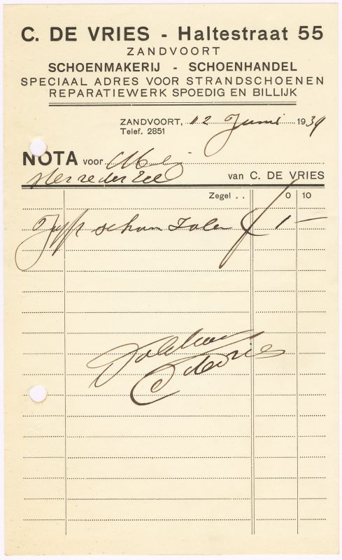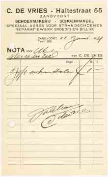 Schoenmakerij - Schoenhandel C. De Vries, Haltestraat 55, 1939