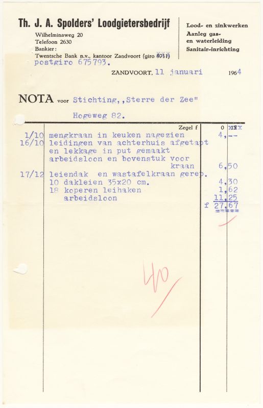 Th. J. A. Spolders, Loodgietersbedrijf, Wilhelminaweg 20, 1964