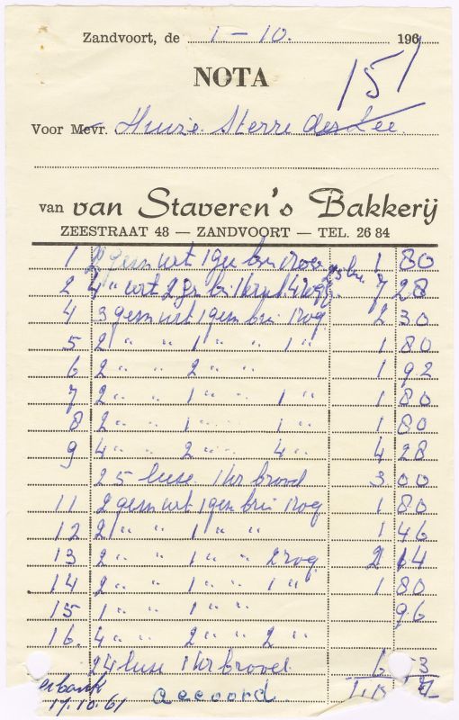 Van StaverenS Bakkerij, Zeestraat 48, 1961