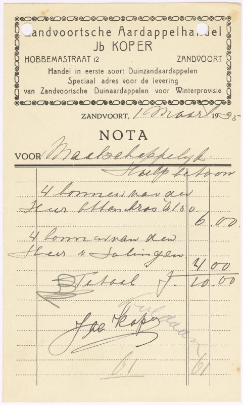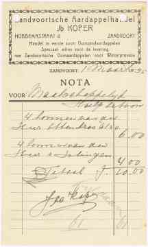 Zandvoortsche Aardappelhandel, Jb. Koper, Hobbemastraat 12, 1935