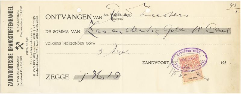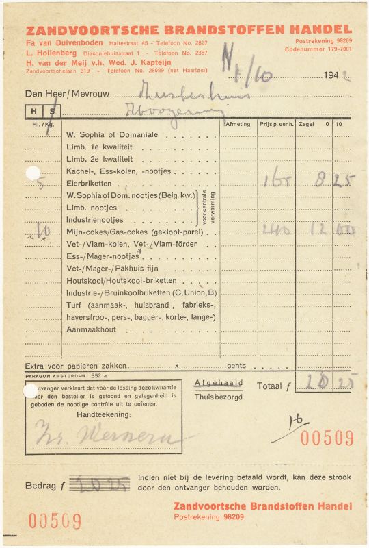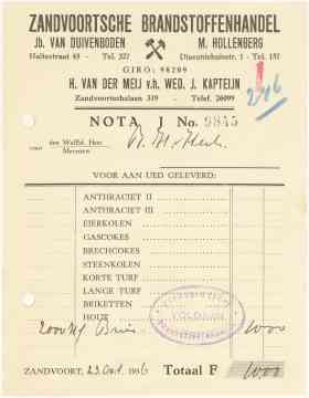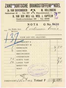 Zandvoortse Brandstoffenhandel, Fa. Van Duivenboden En M. Hollenberg, 1940