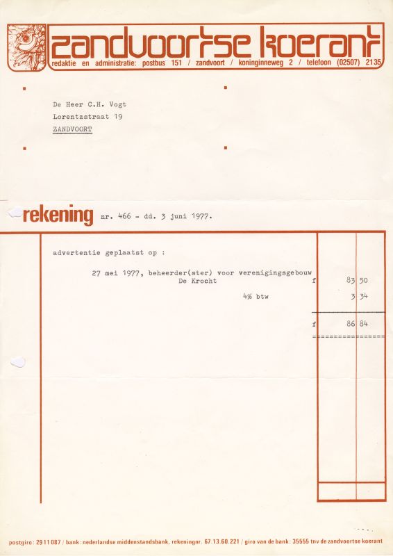 Zandvoortse Koerant, Koningineweg 2, 1977