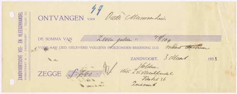 Zandvoortsche Vee- En Vleeshandel, Kerkstraat 36, 1933