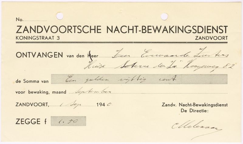 Zandvoortse Nacht-Bewakings Dienst, Koningstraat 3, 1940