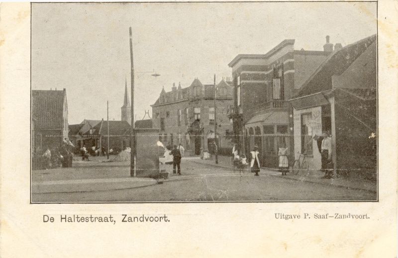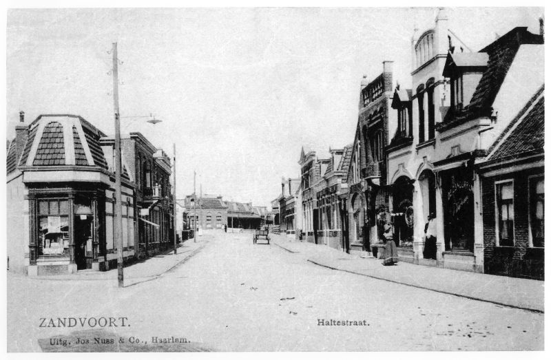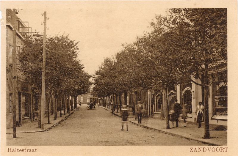 De naam Haltestraat houdt verband met de in 1881 gereedgekomen spoorverbinding Haarlem-Zandvoort. Het eerste spoorstation lag toen achter de Passage, die van 1880-1925 heeft gestaan waar nu de Van Lennepweg overgaat in de Burgemeester van Alphenstraat. Nadat dit station in gebruik was genomen, ontstonden al direct vanuit het centrum van het dorp enkele routes daarheen. Hieronder was ook een route waarvan de Haltestraat, toen nog een naamloze zandweg, deel uitmaakte. Dat deze route al snel de belangrijkste was, kan worden opgemaakt uit het feit dat de naam Spoorwegstraat* reeds in 1887 staat vermeld op een gemeentelijke kaart van Zandvoort met de voornaamste verbindingswegen, voor wat thans de Haltestraat is. Omdat het station nogal ver van het dorp was gelegen, heeft de gemeenteraad de spoorwegdirectie enkele jaren nadat de spoorweg in gebruik was genomen, verzocht om een tussenhalte dichter bij het dorp. De directie voelde daar aanvankelijk niet veel voor en zo heeft het tot 1889 geduurd voordat aan het oude zandpad naar de noordduinen, in het verlengde van de Spoorwegstraat, een tussenhalte voor de trein werd gebouwd. Overigens bestond die in eerste instantie slechts uit een eenvoudige abri. De nieuwe straat die naar de tussenhalte werd aangelegd, kreeg de naam Verlengde Spoorwegstraat*. De namen Spoorwegstraat en Verlengde Spoorwegstraat hebben bestaan tot 1892, toen ze werden gewijzigd in respectievelijk Haltestraat en Verlengde Haltestraat*. Het is overigens niet ondenkbaar dat deze laatste namen reeds in de volksmond als straataanduiding werden gebruikt en daardoor enig burgerrecht hadden verkregen.