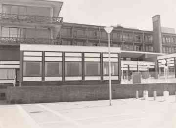 Hotel Bouwes in 1953. Juist voltooid en gebouwd met Amerikaanse subsidie, de Marshall-hulp. Helaas in 1987 reeds afgebro