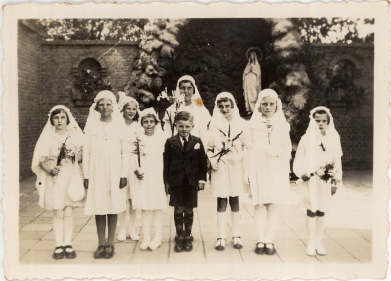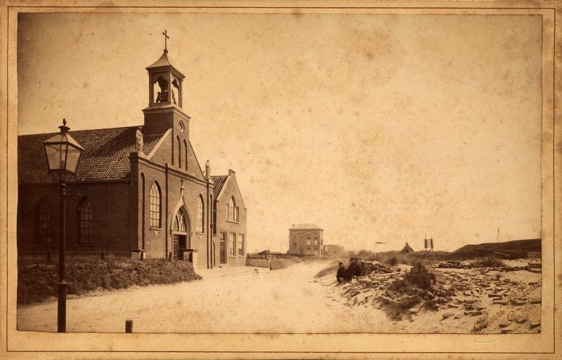 De R.K. Kerk St. Agatha met pastorie. Op de achtergrond de villa van Burgemeeste
