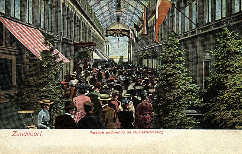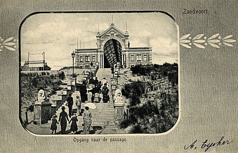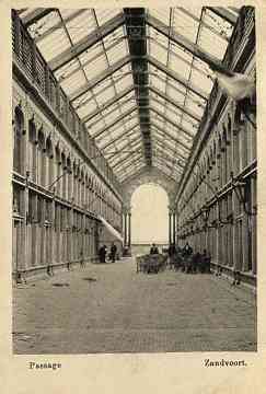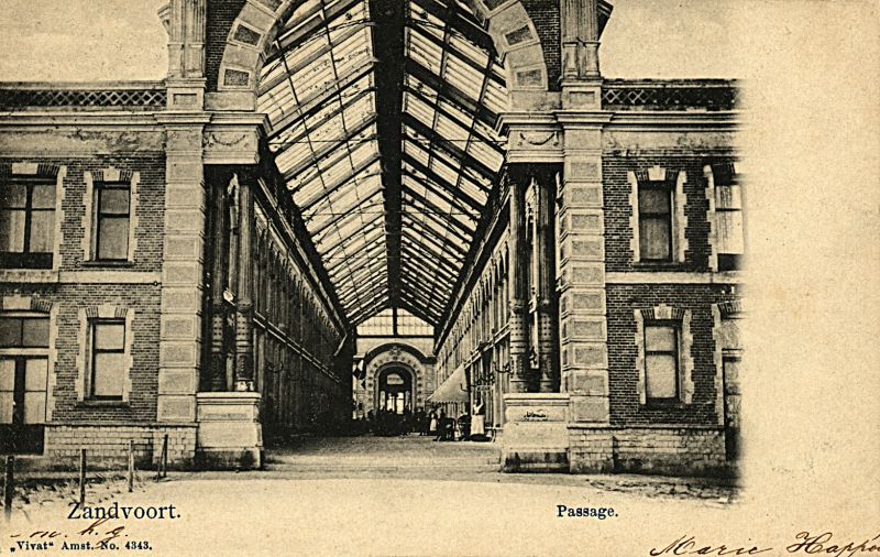 Naar een plan van de J.C. van Wijk werd in 1881 in Bad Zandvoort de Passage gebouwd, gesitueerd in het verlengde van de huidige Van Lennepweg. De architect die vooral bekendheid verwierf als één van de ontwerpers van de Passage in Den Haag, ontwierp een indrukwekkend bouwwerk dat een intermediair vormde tussen het lager gelegen station en het Kurhaus. Een monumentale trap, die aan weerszijden door gebeeldhouwde leeuwen werd geflankeerd, leidde de bezoeker naar de entree. De ingang die door gekoppelde zuilen en geblokte pilasters en twee lagere vleugels werd geflankeerd, bezat een hoge rondboog waarin het wapen van Zandvoort was aangebracht. Achter de entree lag de meterslange Passageruimte. De binnenruimte was twee verdiepingen hoog en bezat een ijzeren kapconstructie met rondboogspanten. Het geheel werd door een glazen zadeldak overdekt. Er verschenen restaurantjes, cafés en lunchrooms. Ruim twintig winkels, waaronder chocolade-, sigaren- en wijnwinkels probeerden met hun geëmailleerde uithangborden de aandacht van het passerende publiek te trekken.